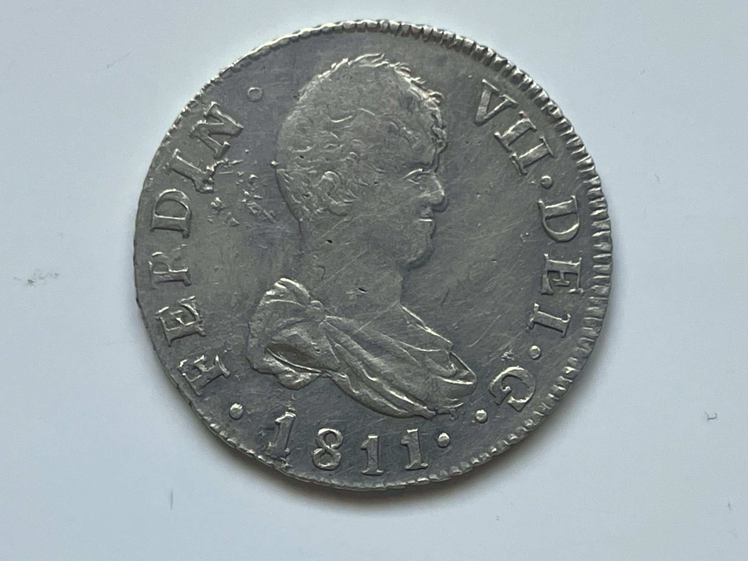 2 Reales 1811 Cataluña S.F Fernando VII .5.60g .MBC+/EBC- escaso.