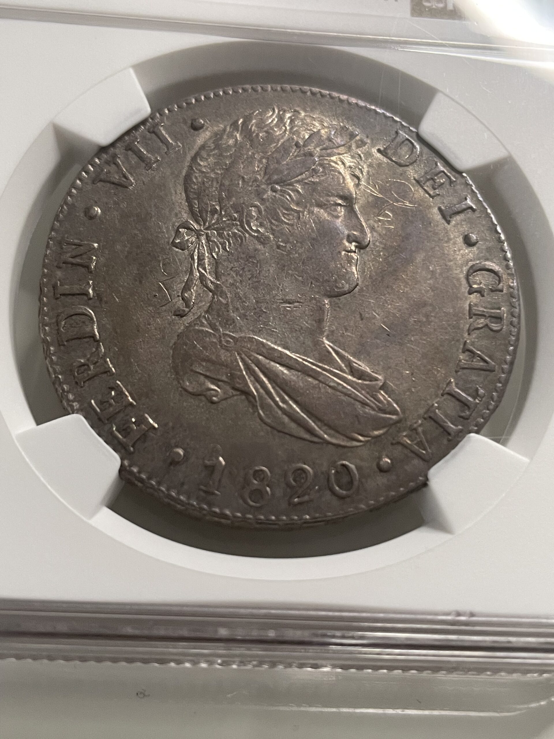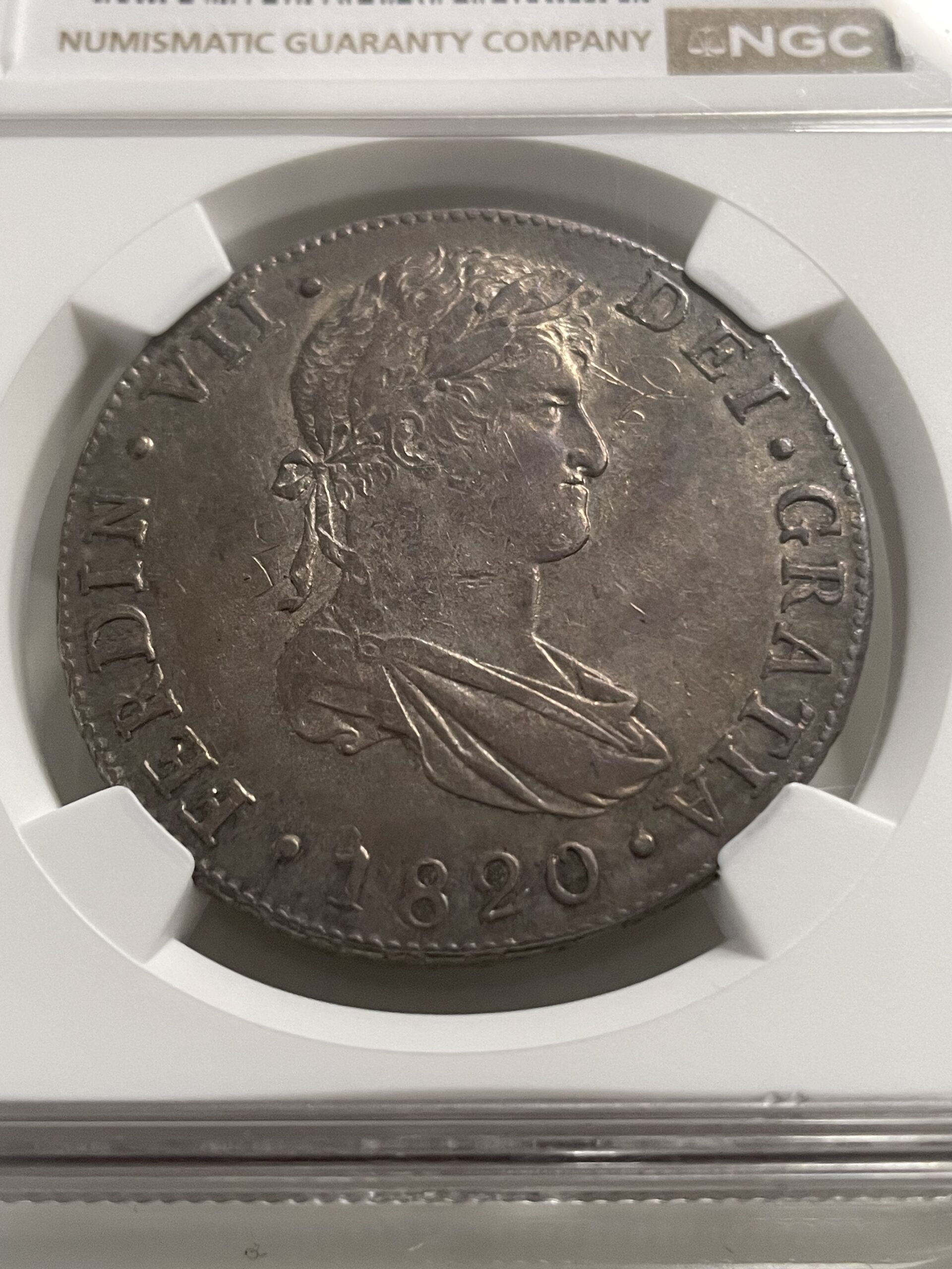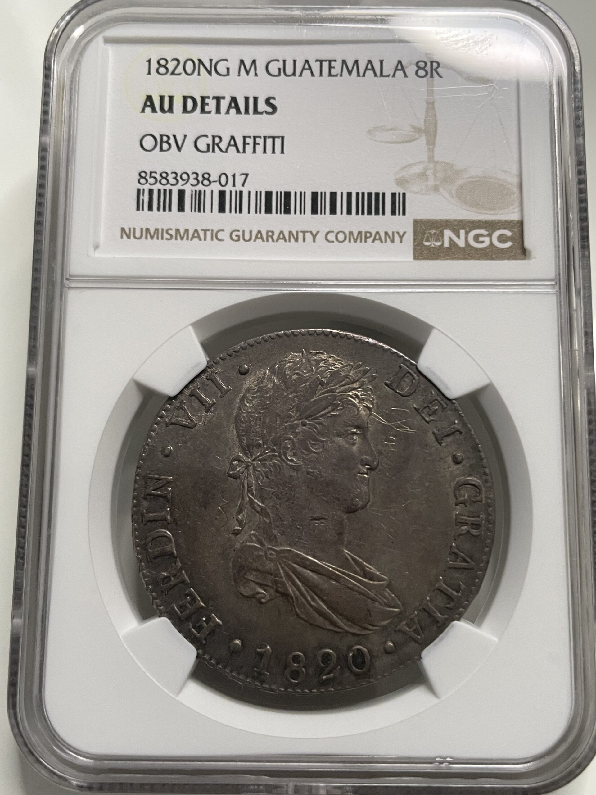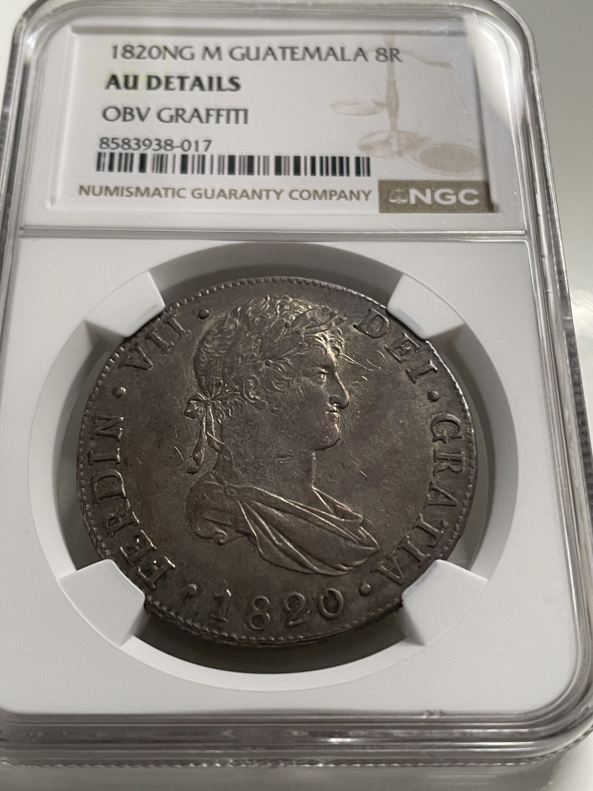 8 reales 1820 Guatemala M. AU Details OBV Graffiti