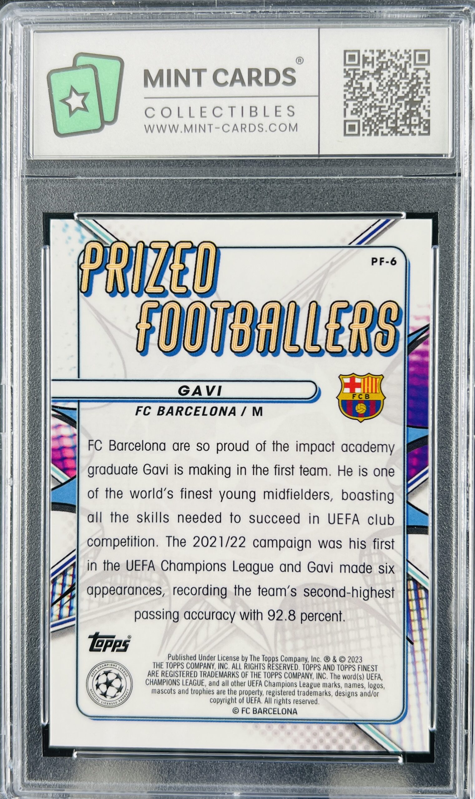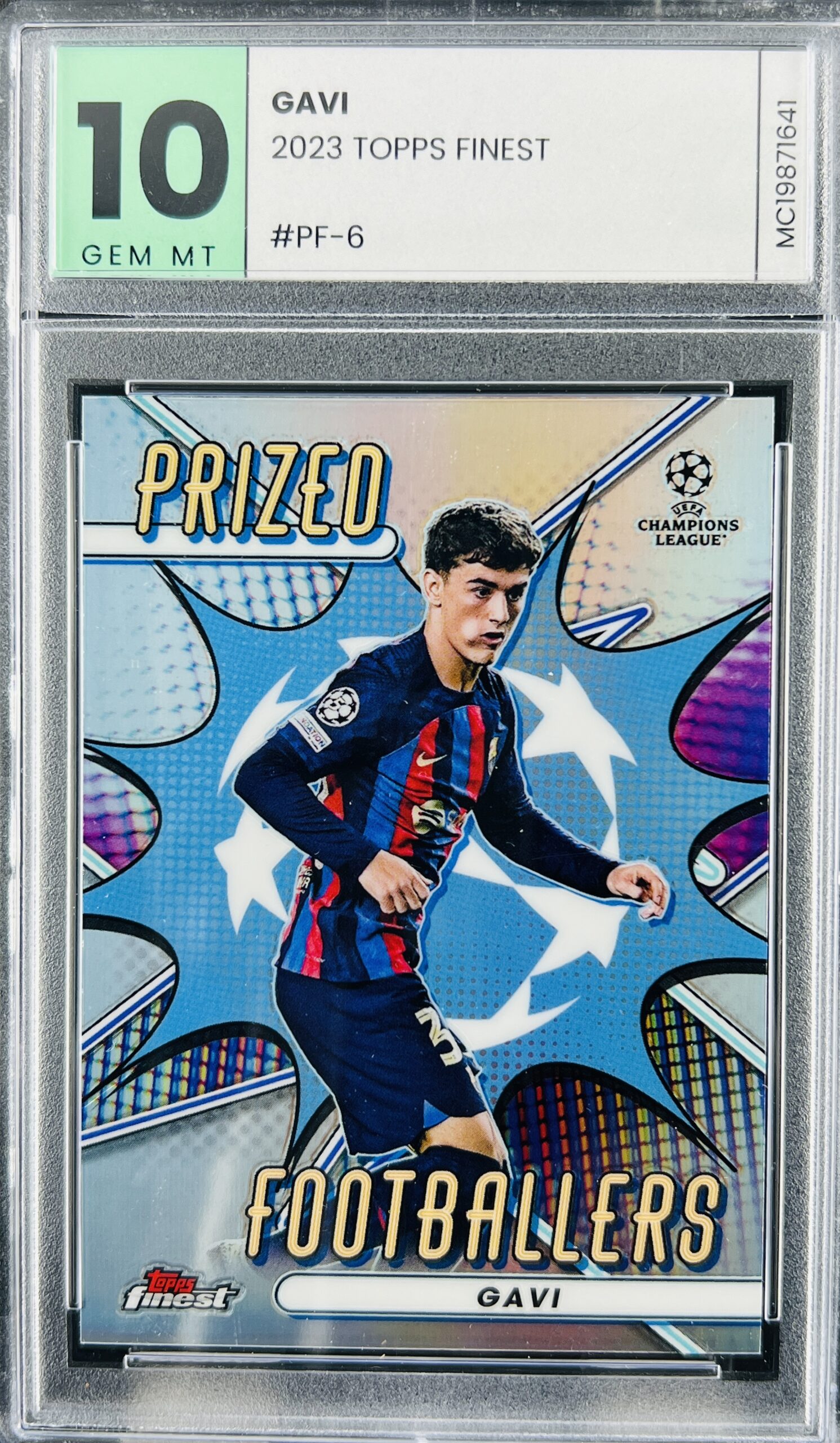 Cromo de fútbol Gavi Topps Finest Prized Footballers 2023 GM 10