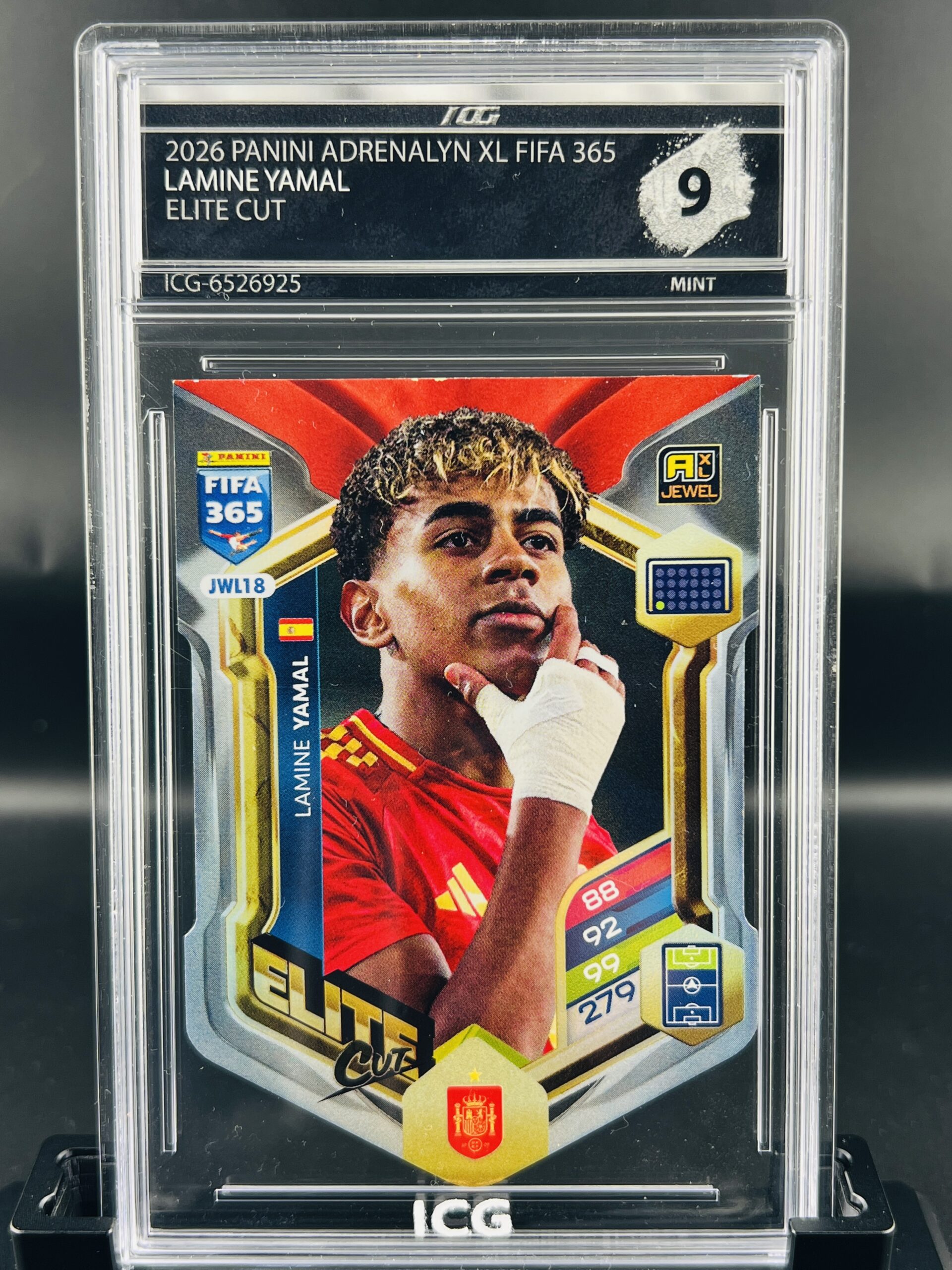 Cromo de fútbol Lamine Panini adrenalyn XL Elite cut Yamal ICG mint 9