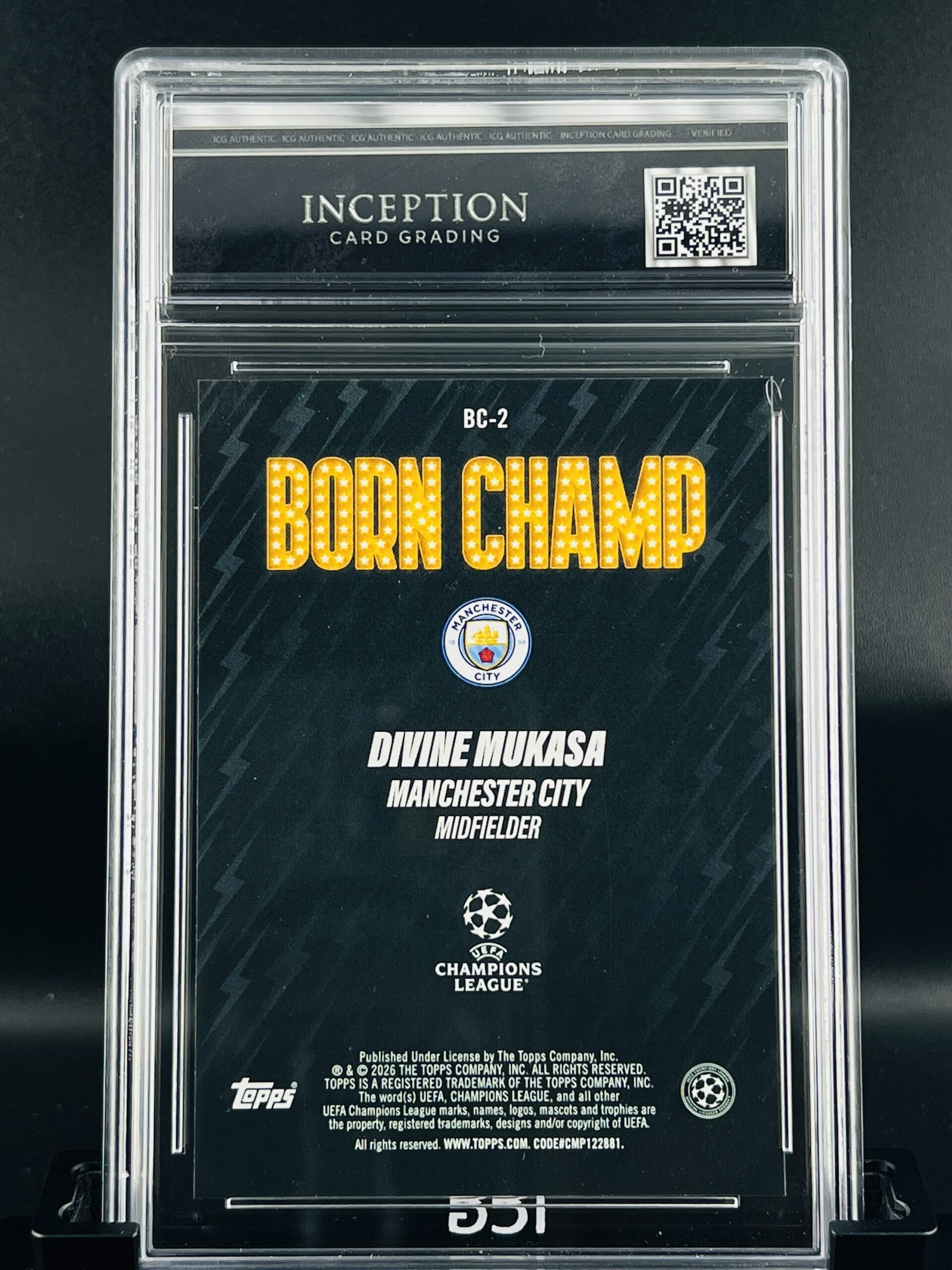 Cromo Divine Mukasa Rookie GEM MINT 10 Topps UCC Born Champ Inception Card Grading