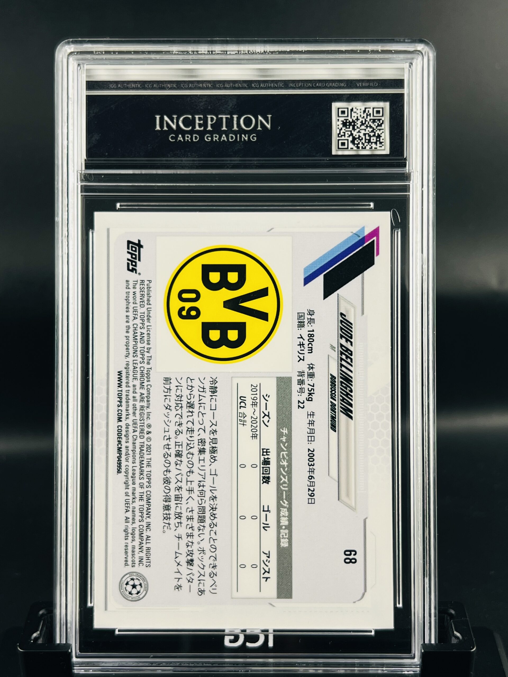 Cromo Jude Bellingham Rookie Japan GEM MINT 10 Topps ICG Inception Card Grading