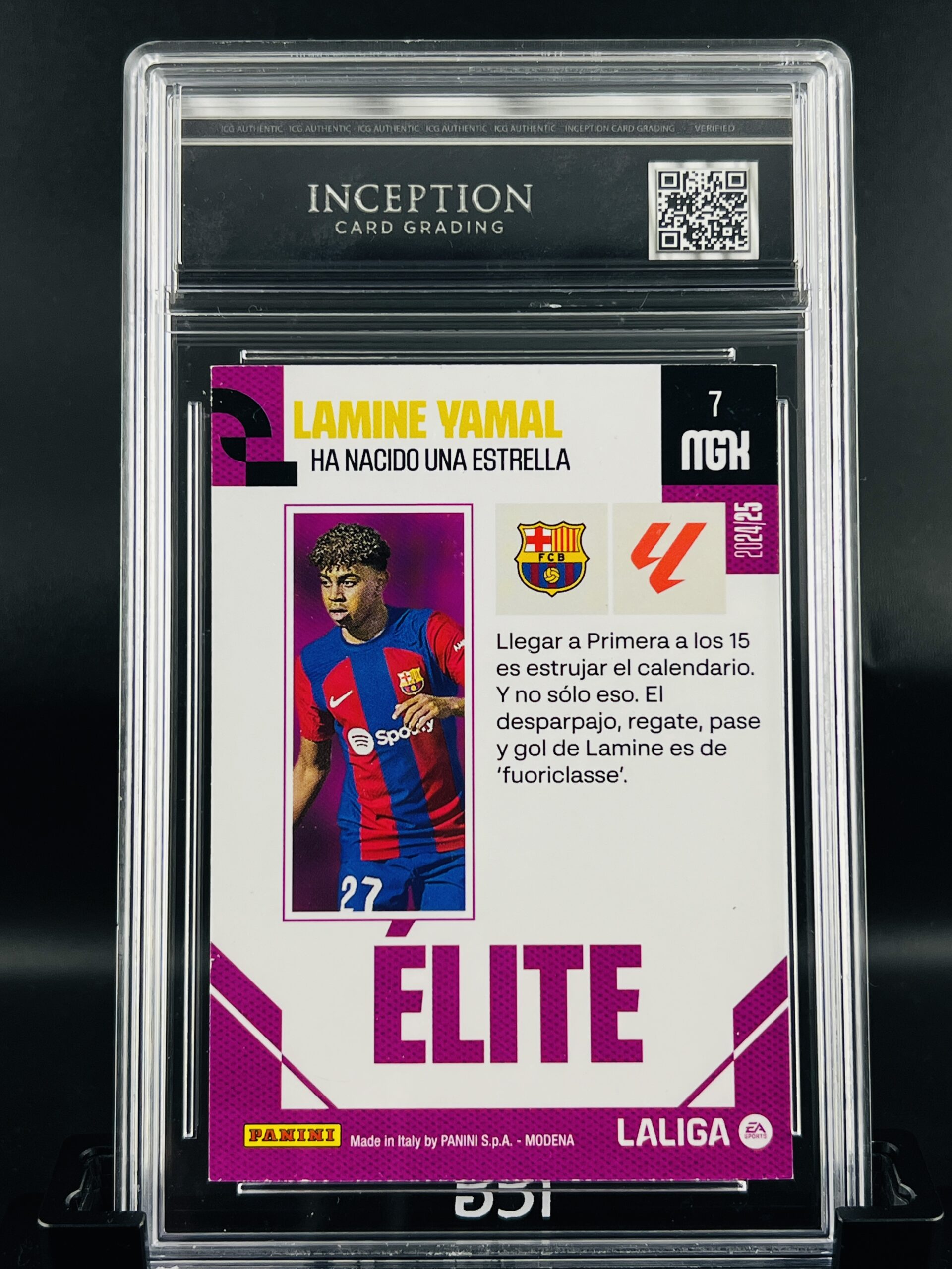 Cromo Lamine Yamal MINT 9 Panini MGK Elite ICG Inception Card Grading