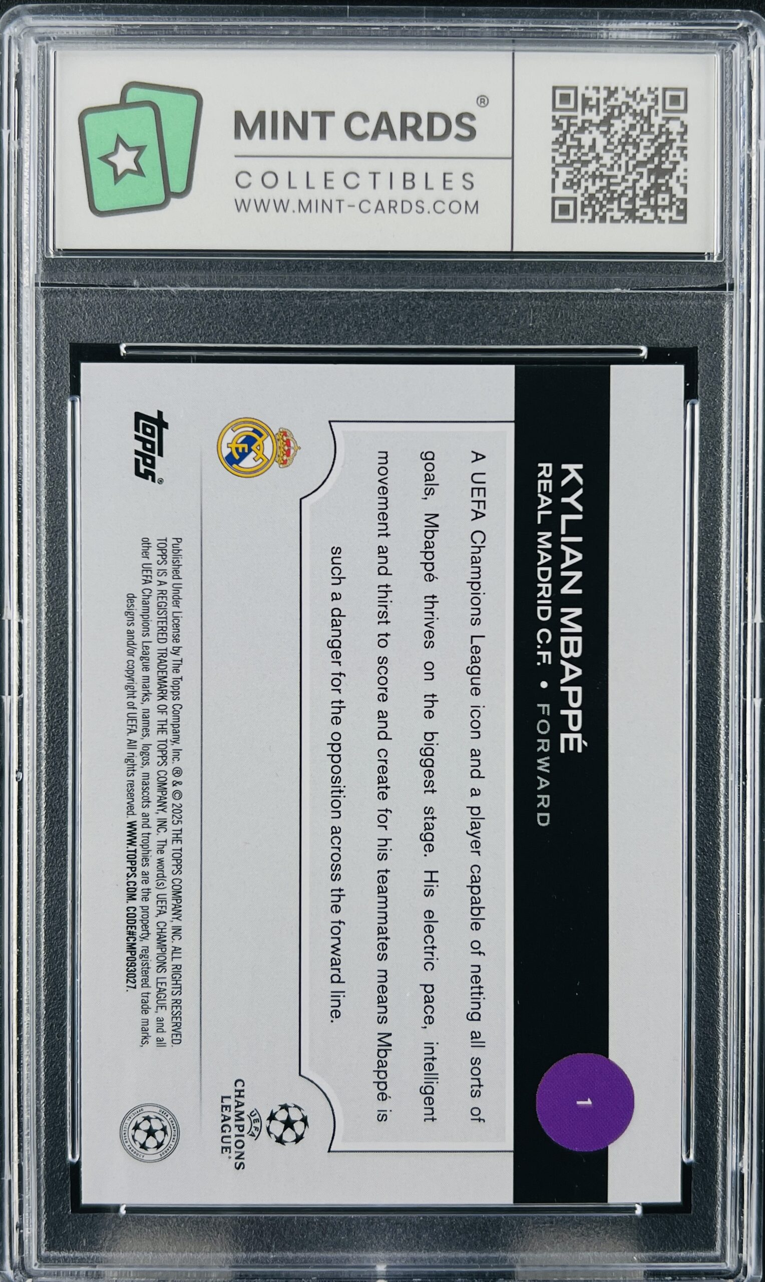 Cromo de fútbol Kylian Mbappé Topps 2024-25 UEFA Club Competitions #1 GEM MT 10 – MINT CARDS