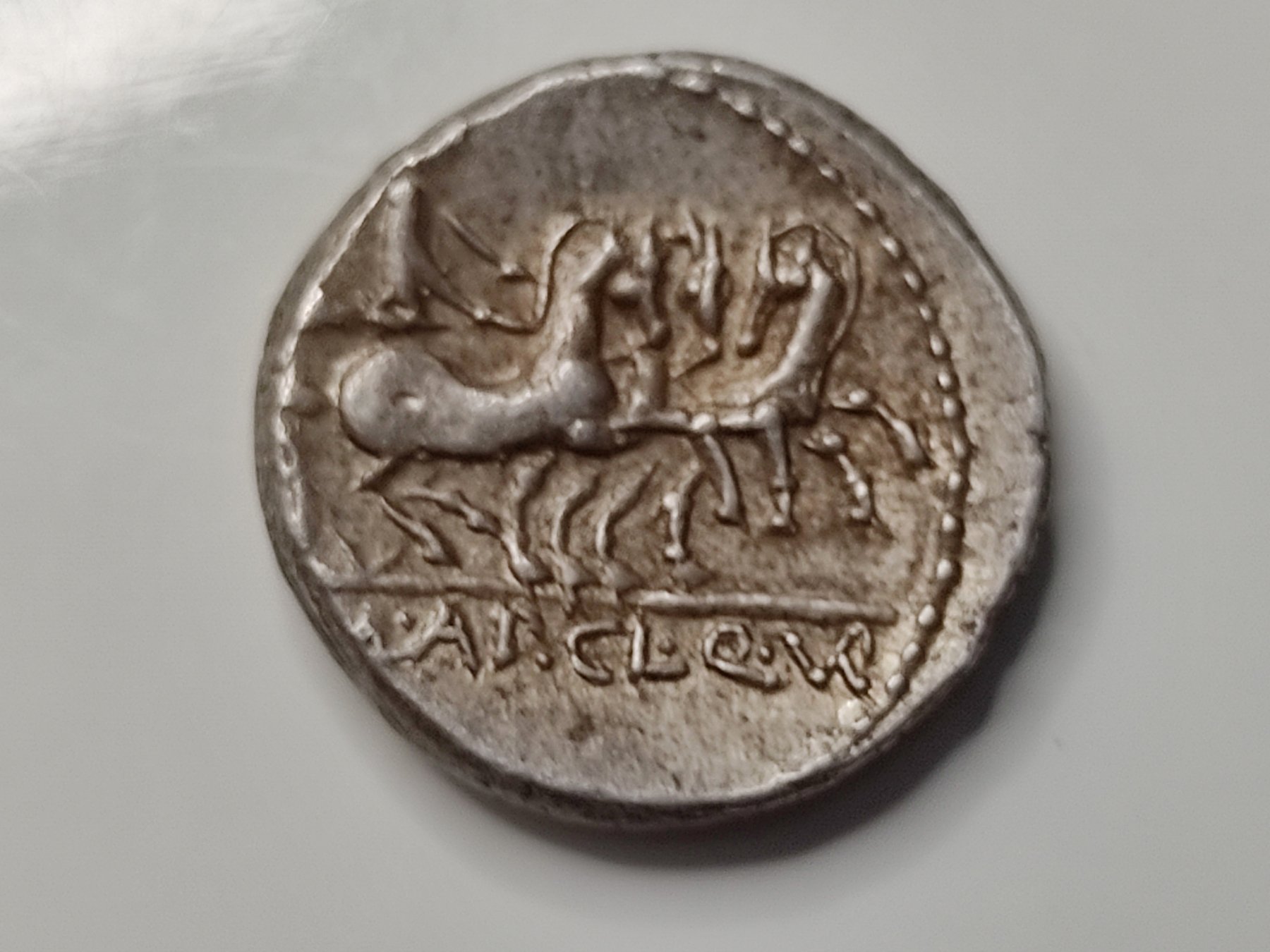 Denario Mallius Mancinus Appius. 111-110 a.C.Anverso: Cabeza de Roma hacia la derecha, círculo detrás. Reverso: Victoria en triga hacia la derecha, en exergue (T).MAL.AP.CL.Q.VR (Bab. 2) (Craw. 299/1b). 3,95 g.
