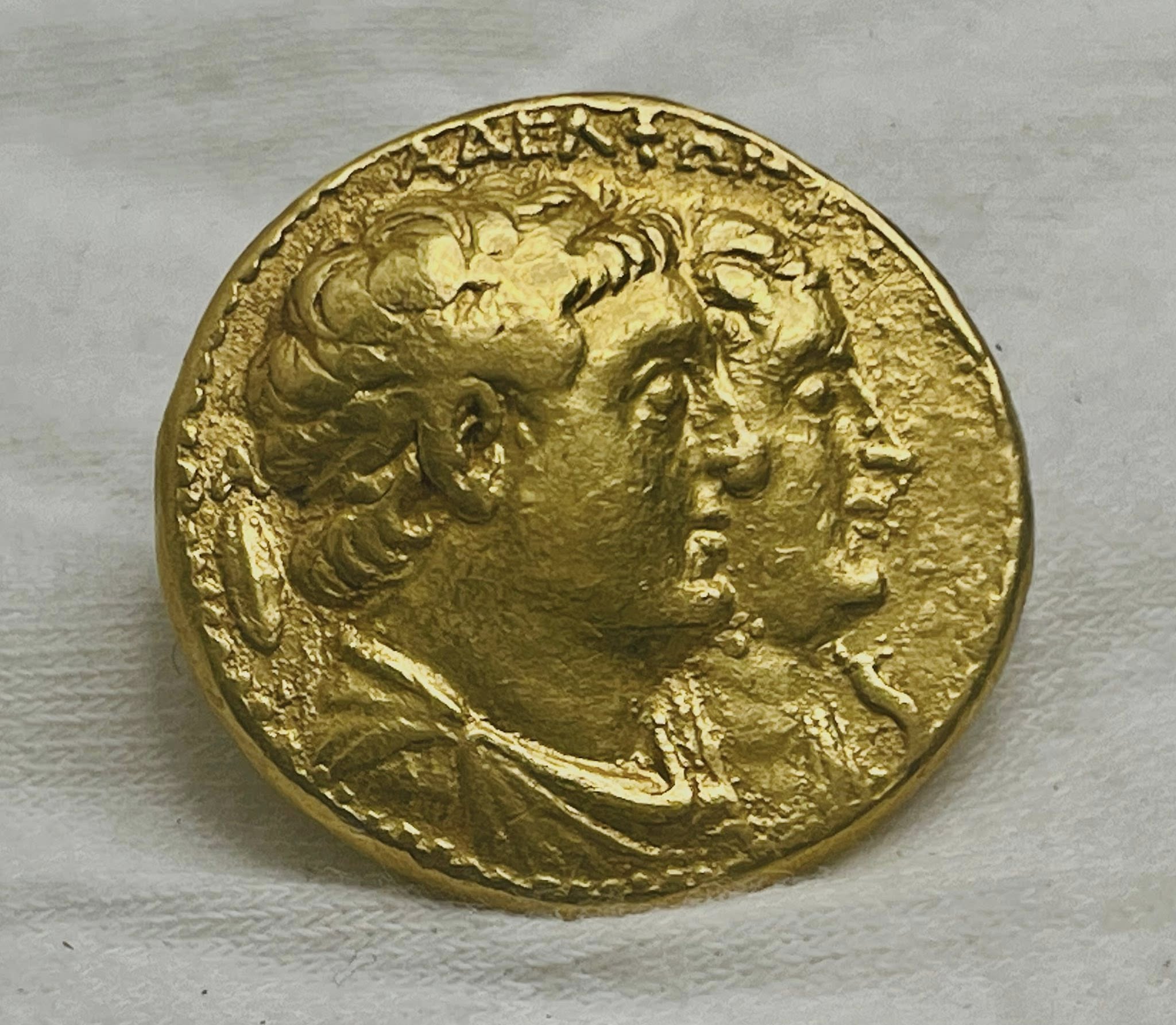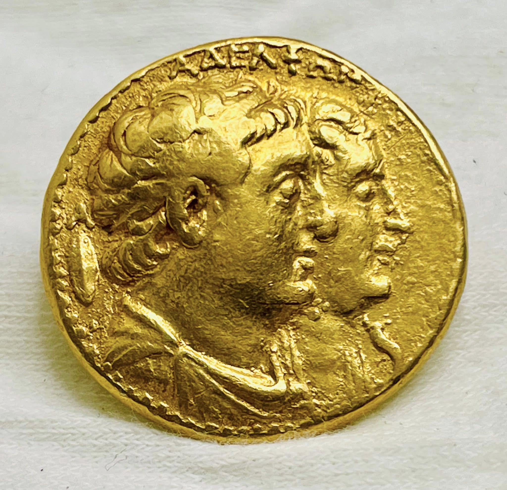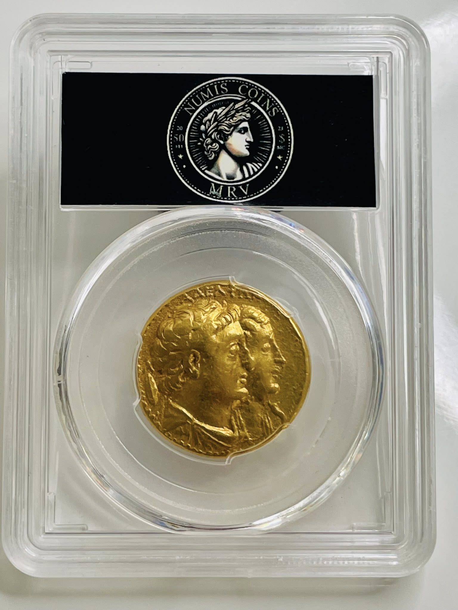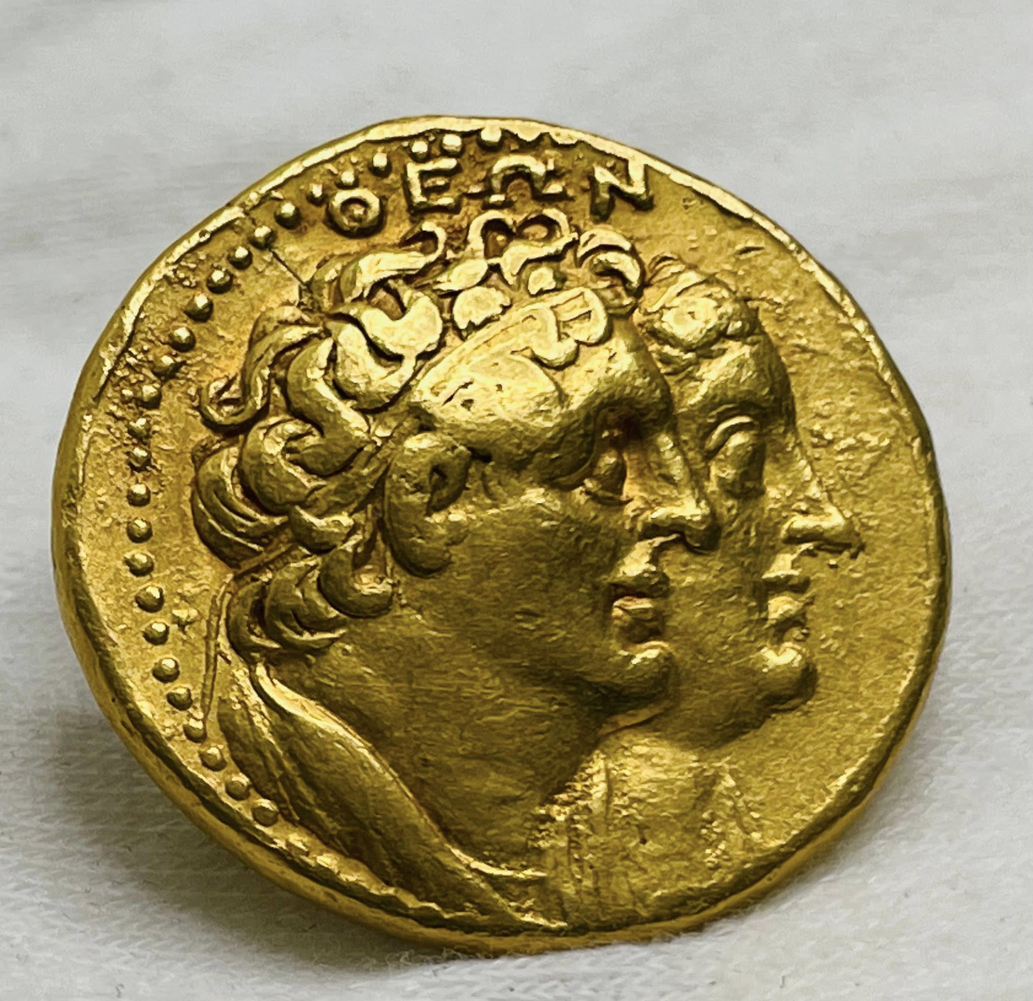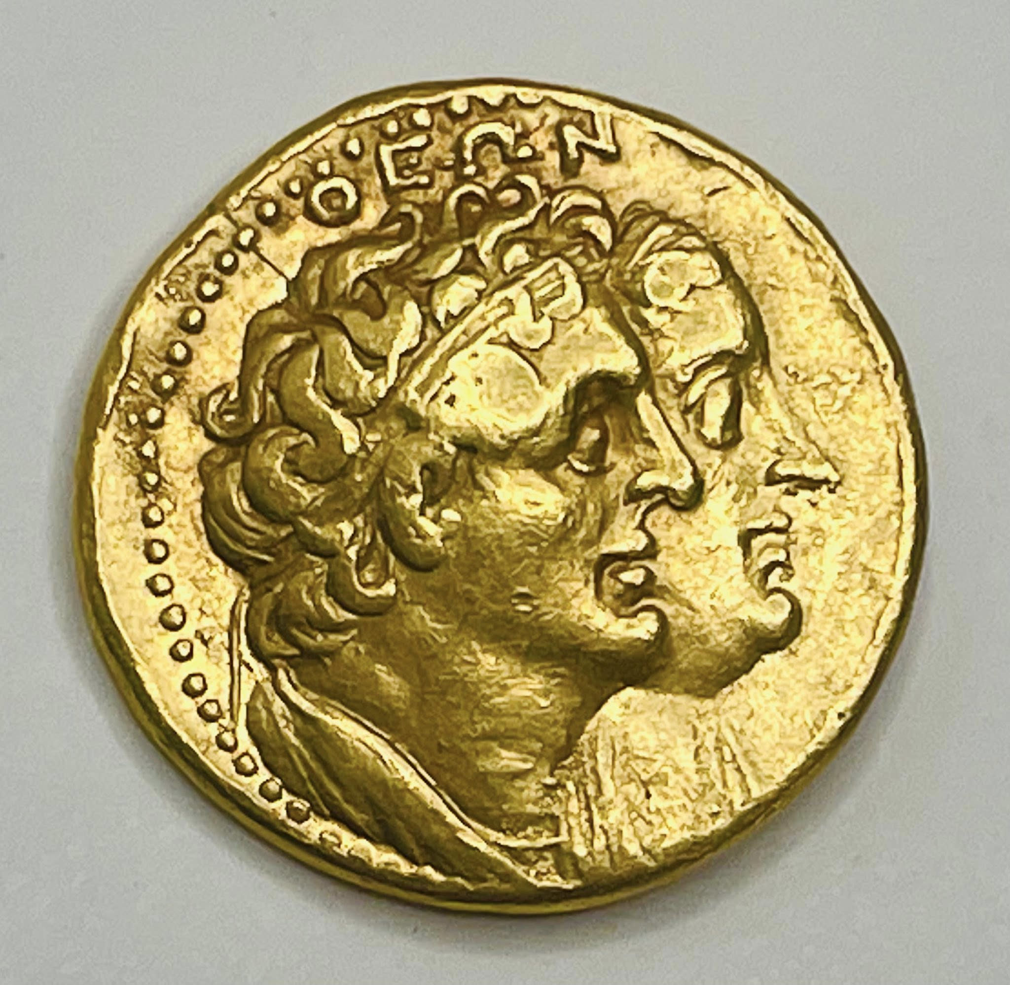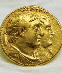 La moneda Octodracma Ptolomeo II Filadelfo es un claro ejemplo. Se trata de un muy original octodracma de Tolomeo II, una gran moneda de oro de más de 27,70 gramos de peso y unos 28 milímetros de diámetro.